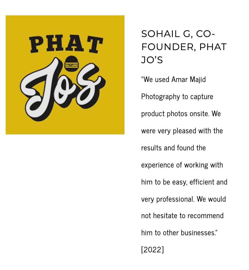 “I’ve worked with Amar a few times now and I can say that I am very pleased with the professionalism. I would most definitely recommend him to anyone who wants any photoshoots, and for photography for their business!”